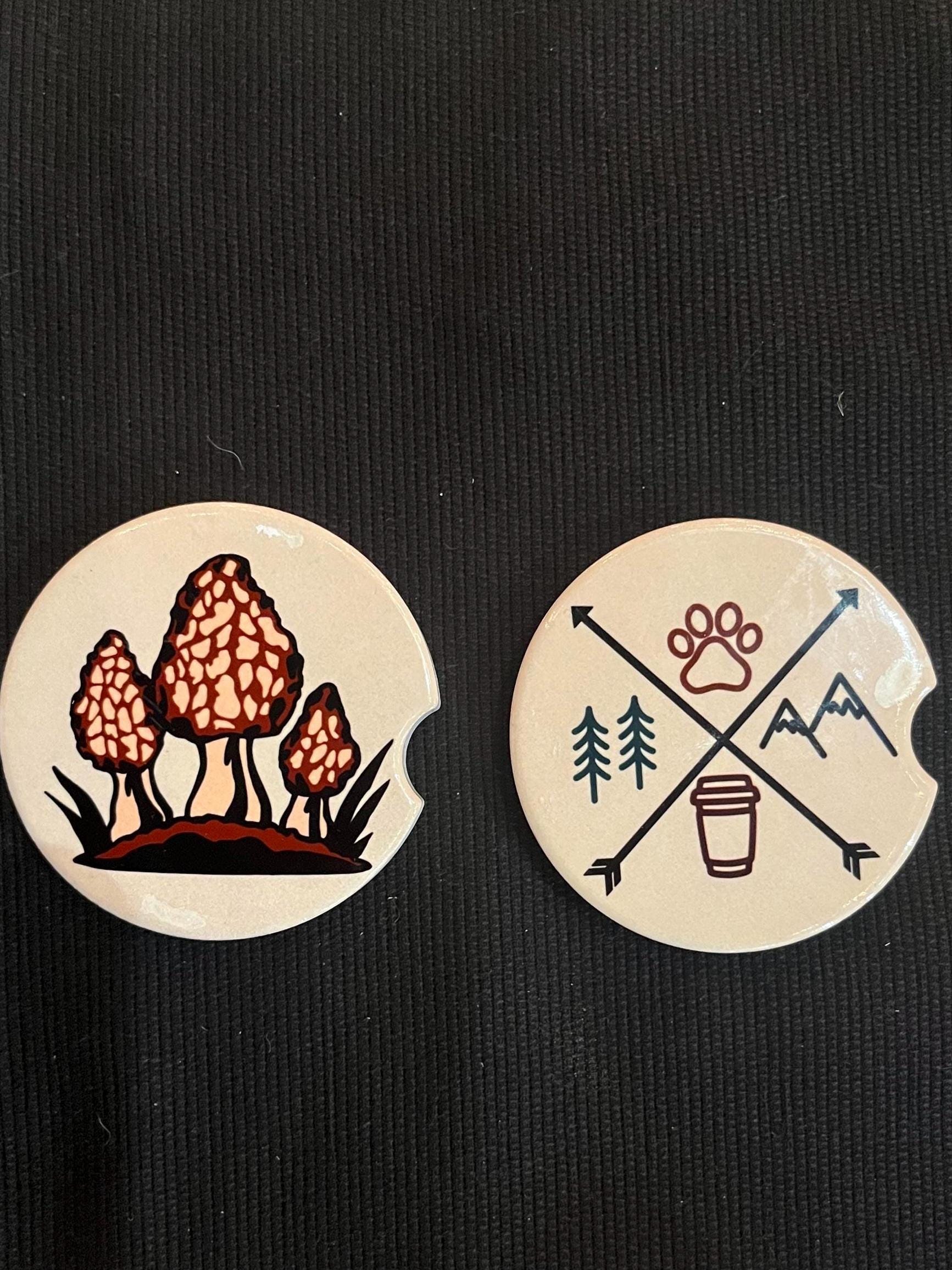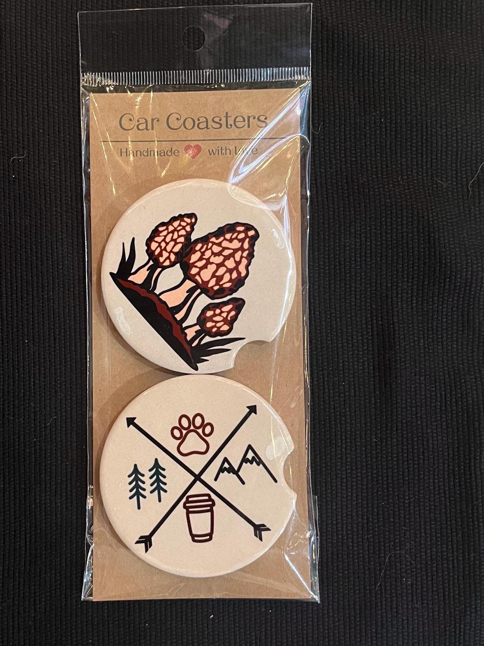 Morel Mushroom the Hiking Life - Ceramic and Cork Car Coaster Set