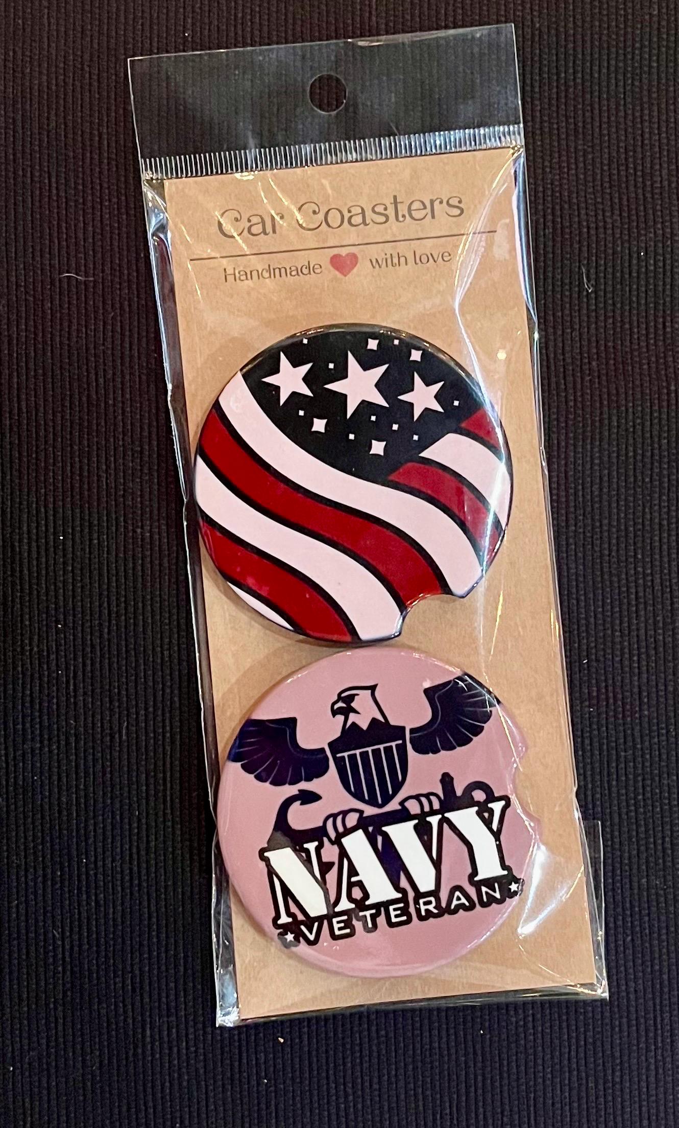 Navy Veteran - Ceramic and Cork Car Coaster Set