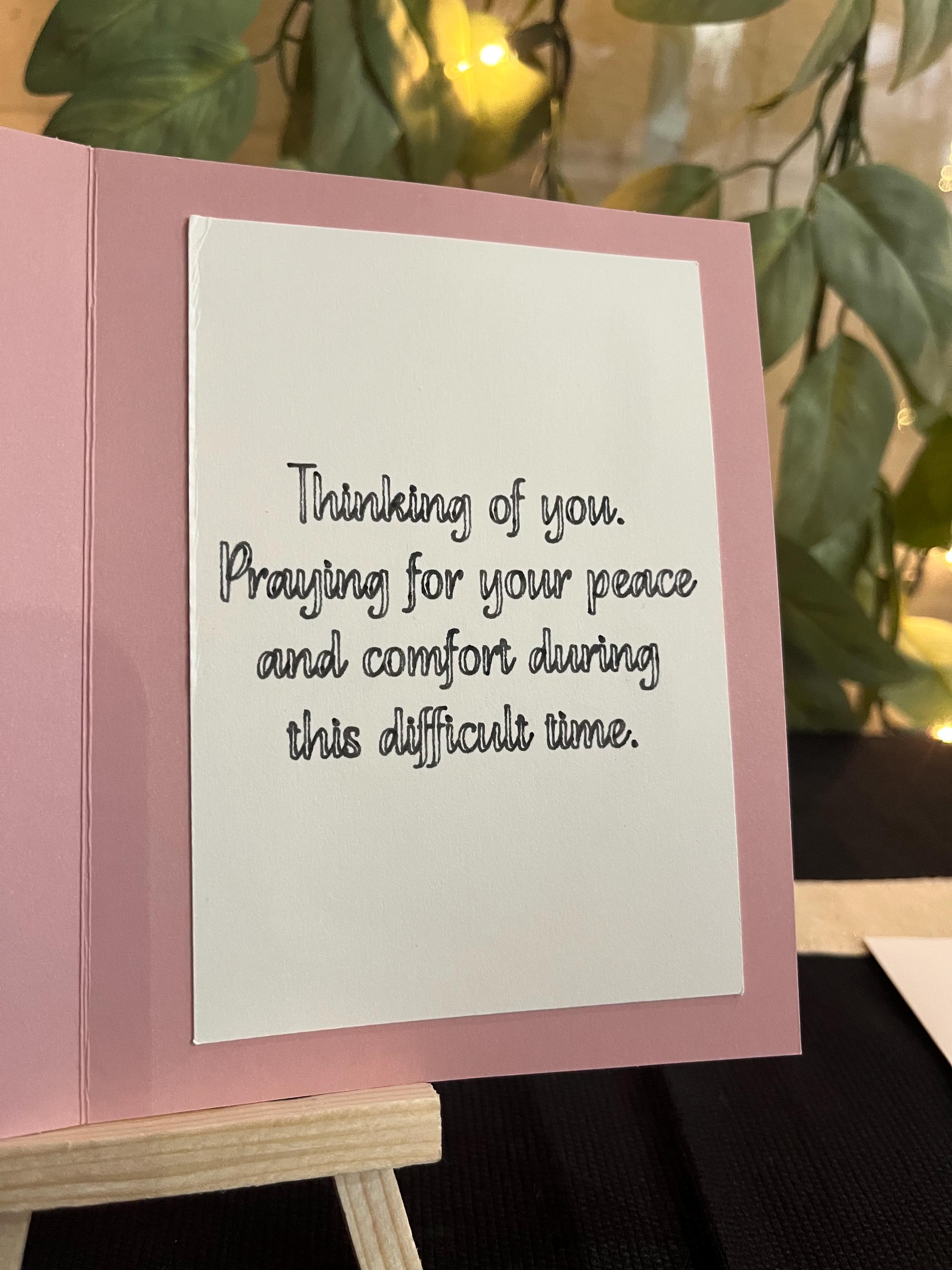 "Thinking of You. Praying for your peace and comfort during this difficult time." If you would like for the message to be changed, please let us know!