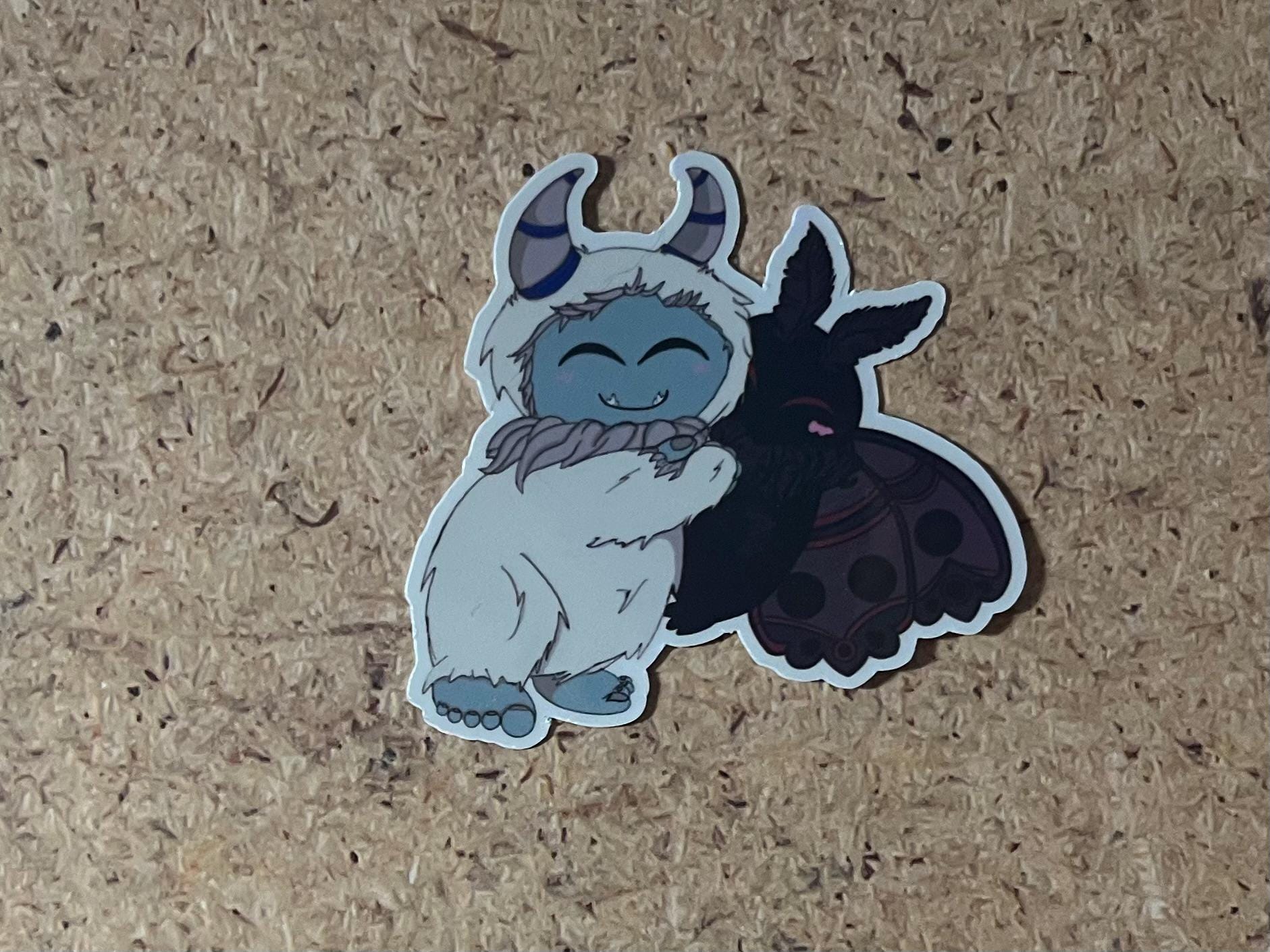 This collection features 5 UV-resistant and waterproof decals, each measuring approximately 2 inches or more, perfect for personalizing your gear or adding a whimsical touch to any surface. Enjoy delightful designs like "To a Flame," showcasing Mothman roasting marshmallows, "Mobile Lights," capturing the magic of fireflies, and the charming "Moth vs. Mothman," where a curious moth rests on our beloved character. Additionally, immerse yourself in the serene beauty of "Moonlit Flowers," depicting Mothman amidst luminous blooms, and the heartwarming scene of Mothman with his adorable friend Yeti. As a bonus, this combo pack includes a charming keychain featuring Mothman's new companion, Cthulhu! Don't miss out on the upcoming Cthulhu Series and Yeti Series for more whimsical adventures!