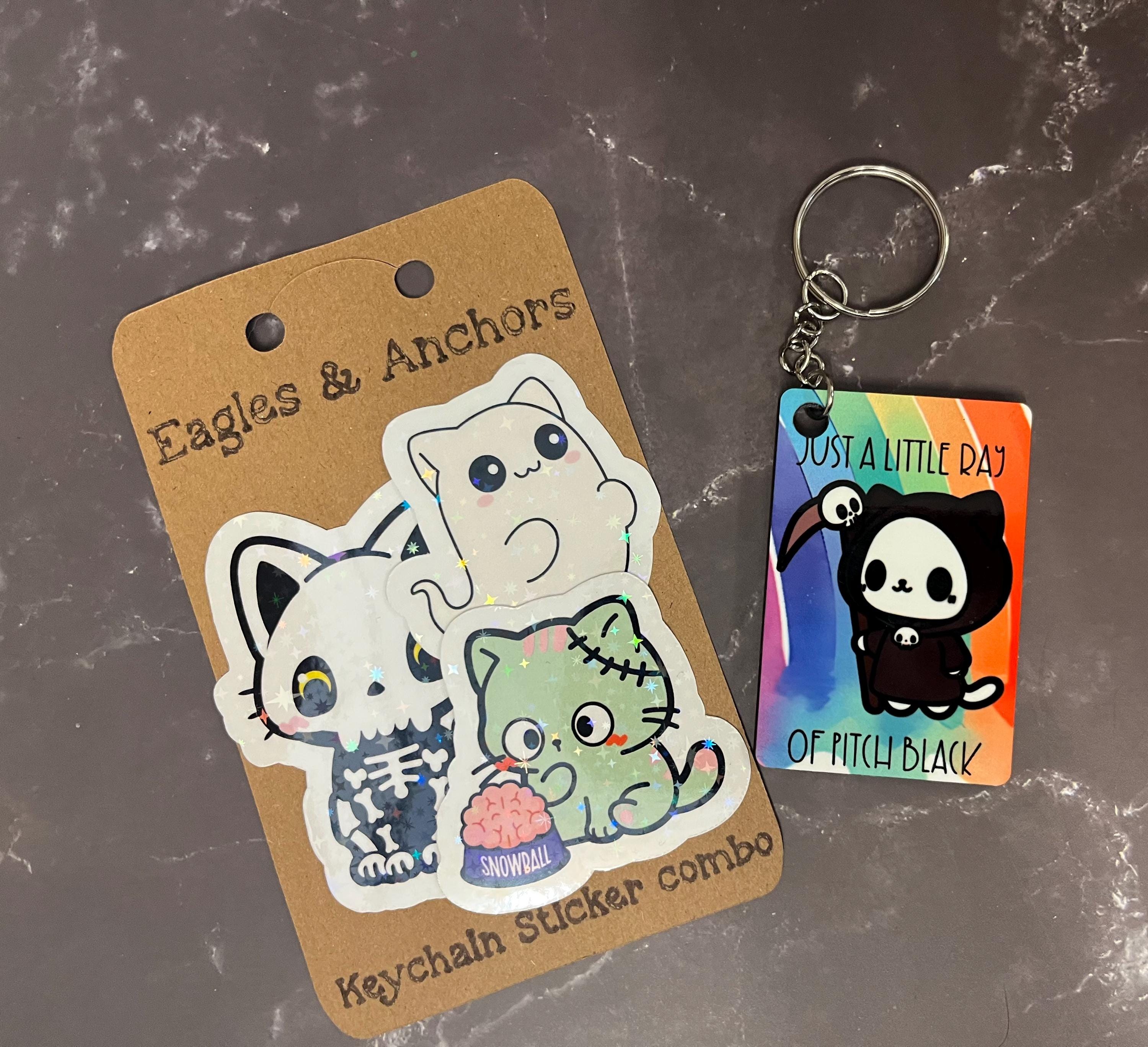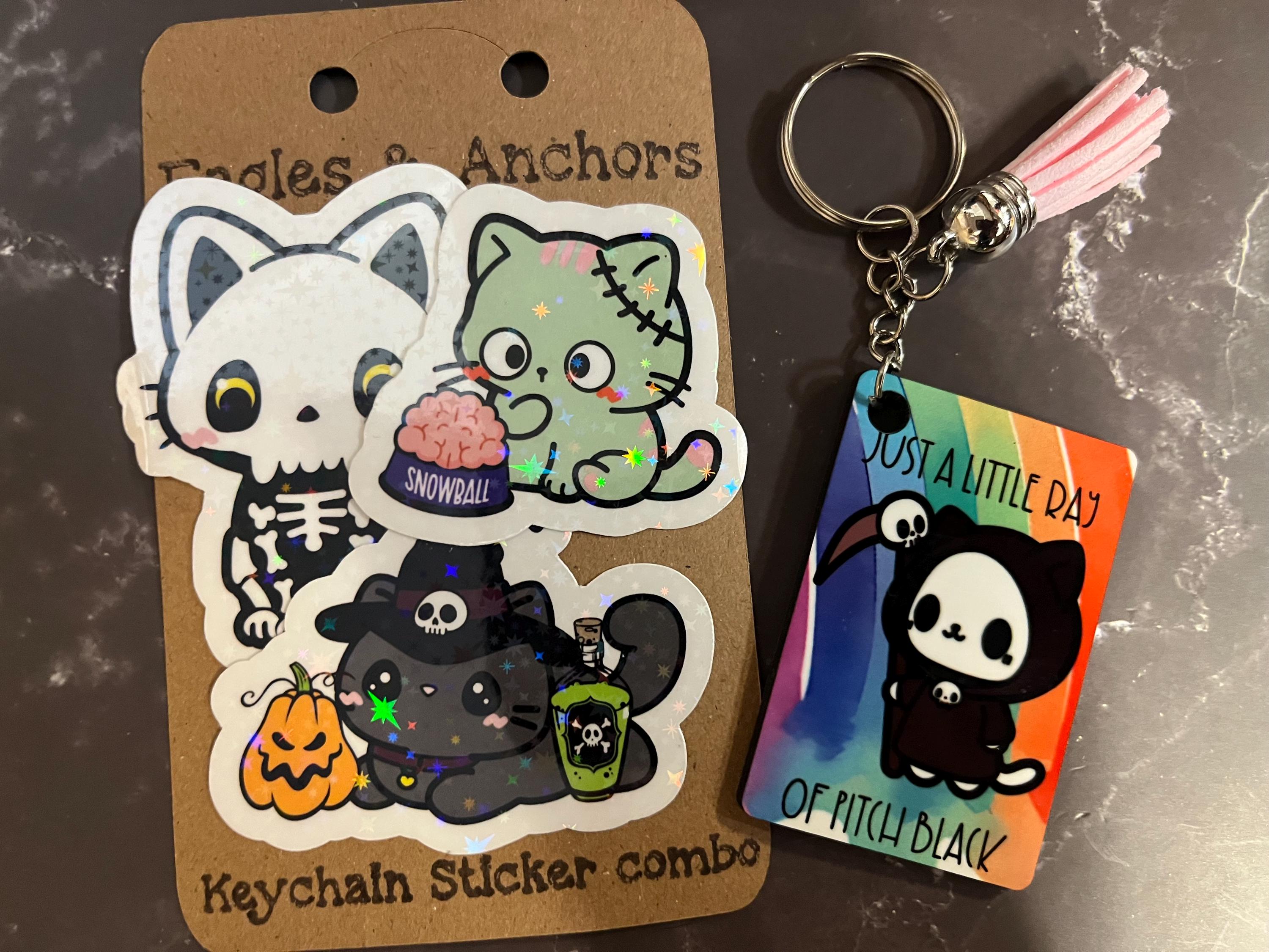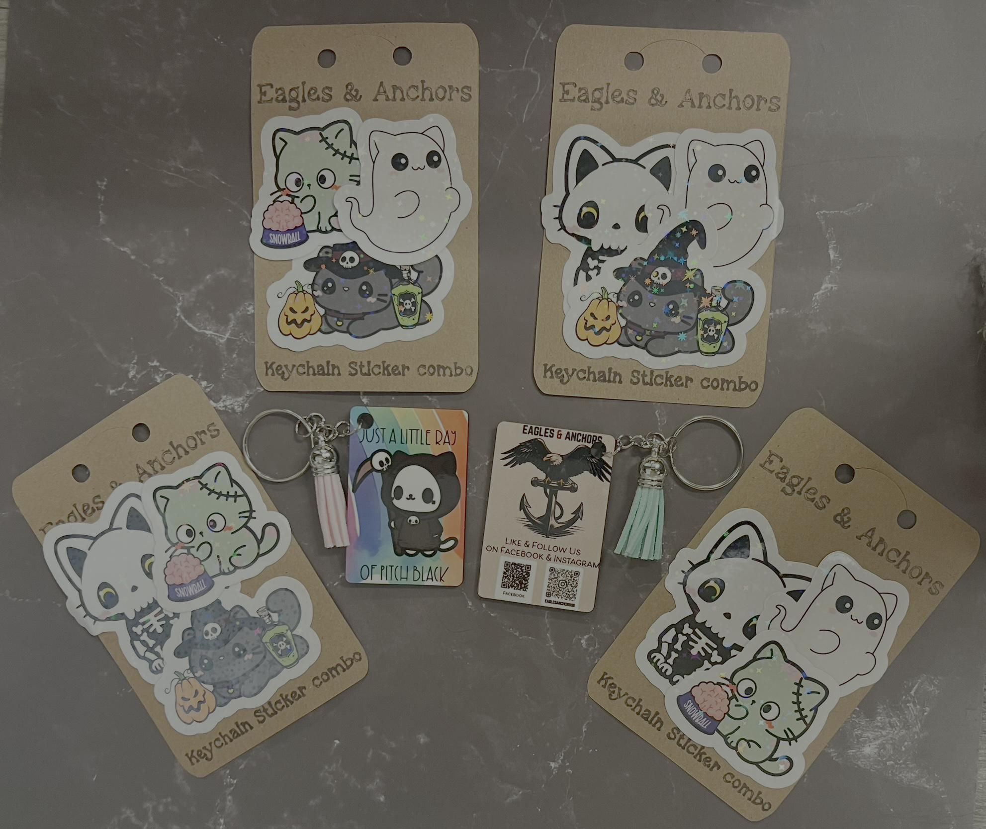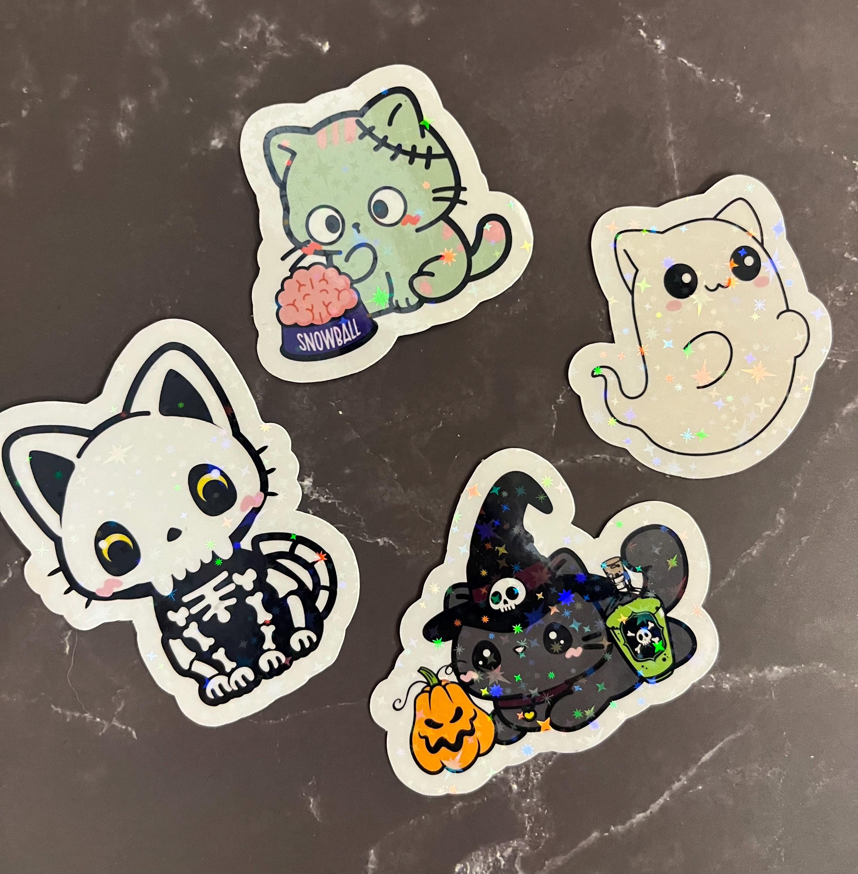 Discover the spooky vibes with these adorably cute cats! These are hand drawn and colored!